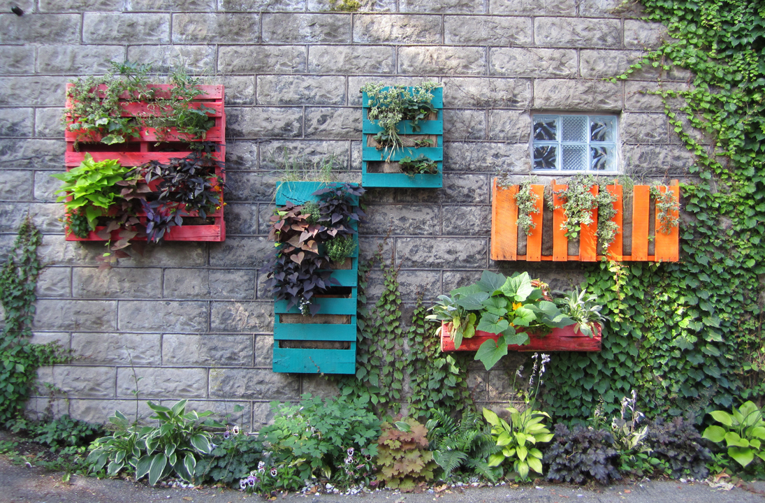 Se aconsejan plantas de crecimiento rápido y de hoja verde. Lo lógico sería sembrar en el primer palet esparragueras, luego hiedras y más arriba alisos. La idea es crear no solo un jardín vertical sino un elemento de decoración por lo que las plantas con hojas y tallos de mayor tamaño han de ir ubicadas en las partes superiores. Si lo prefiere puede optar por sembrar plantas aromáticas que le permitirán tener una pequeña despensa al lado de la cocina para darle un toque especial a sus platos.